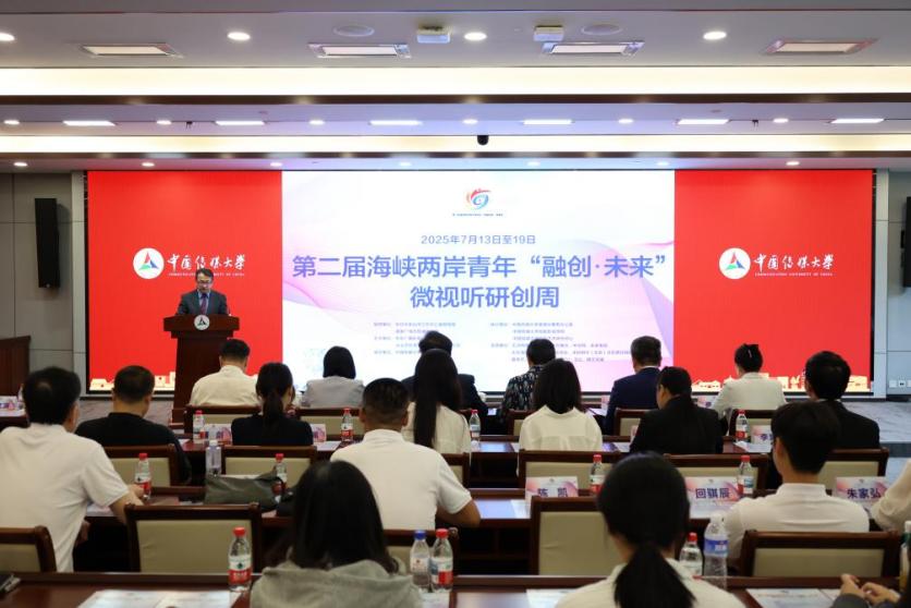 (通讯员 李旷怡 摄影 梁博洋)7月14日上午,在中共中央台湾工作办公室宣传局和国家广电总局港澳台办的指导下,由中华广播影视交流协会与台北市影音节目制作商业同业公会联袂主办,由918博天堂(中国区)官方网站承办的第二届海峡两岸青年“融创·未来”微视听研创周活动在918博天堂学术中心拉开帷幕。